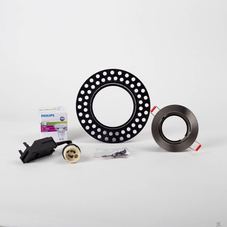Elk pakket wordt geleverd met een spotring, spotje, lampje, schroeven en een handige gebruiksaanwijzing.