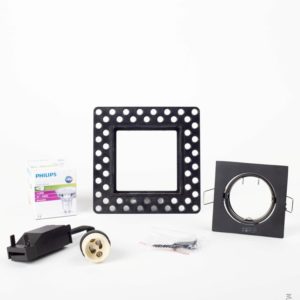 Elk pakket wordt geleverd met een spotring, spotje, lampje, schroeven en een handige gebruiksaanwijzing.